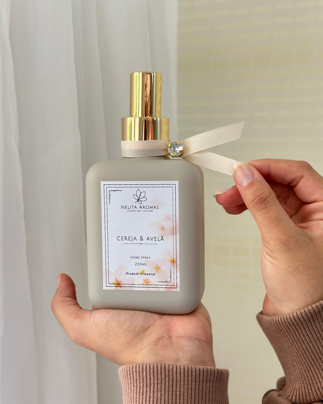 Produzido de forma artesanal, o Home Spray Cereja & Avelã reflete o cuidado da Nelita Aromas em cada detalhe — da escolha da fragrância ao acabamento final. Um produto pensado para criar ambientes acolhedores, elegantes e cheios de personalidade.