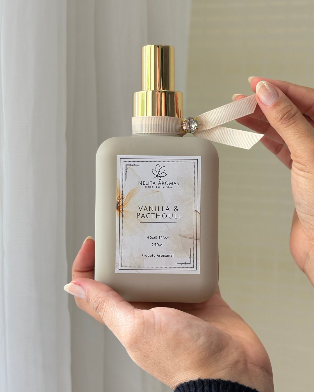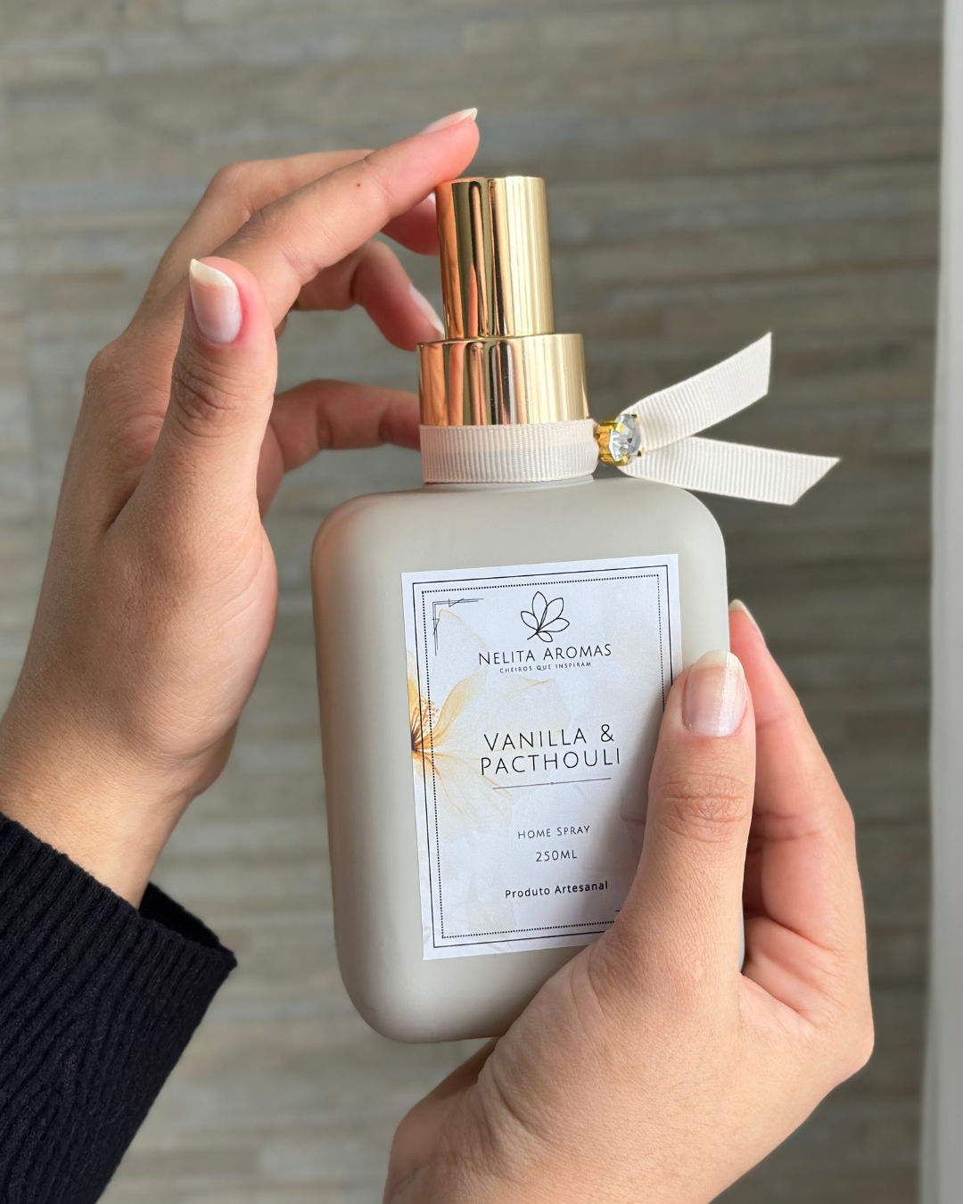 Produzido de forma artesanal, o Home Spray Vanilla & Patchouli reflete o cuidado da Nelita Aromas em cada detalhe — da escolha da fragrância ao acabamento final. Um produto pensado para quem valoriza ambientes elegantes, acolhedores e aromas que permanecem na memória.