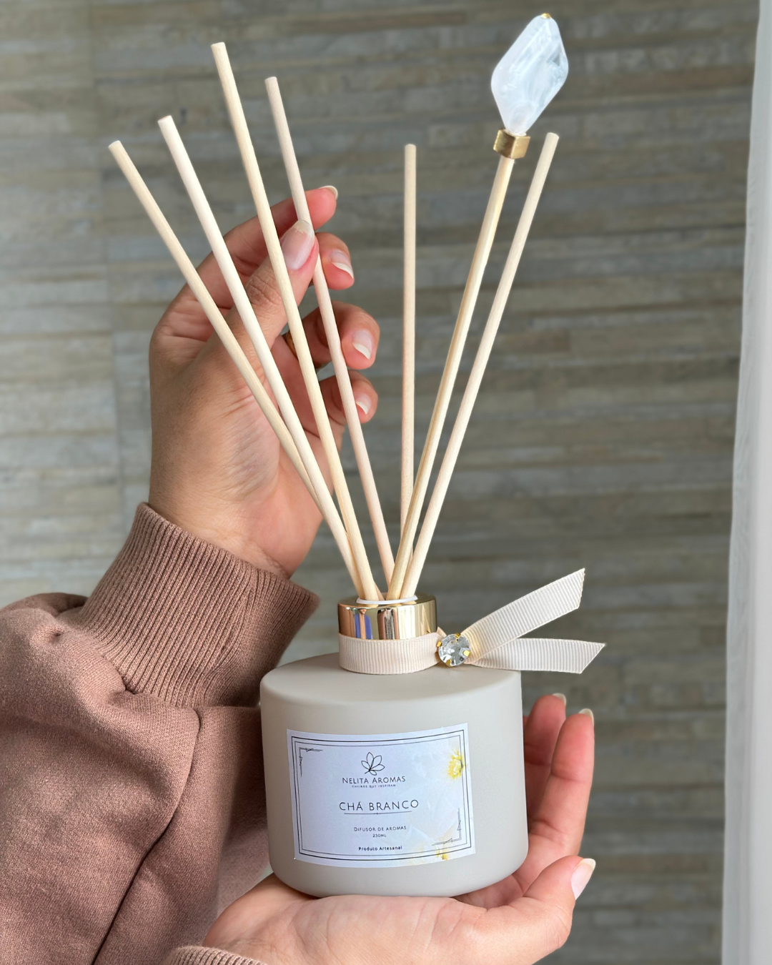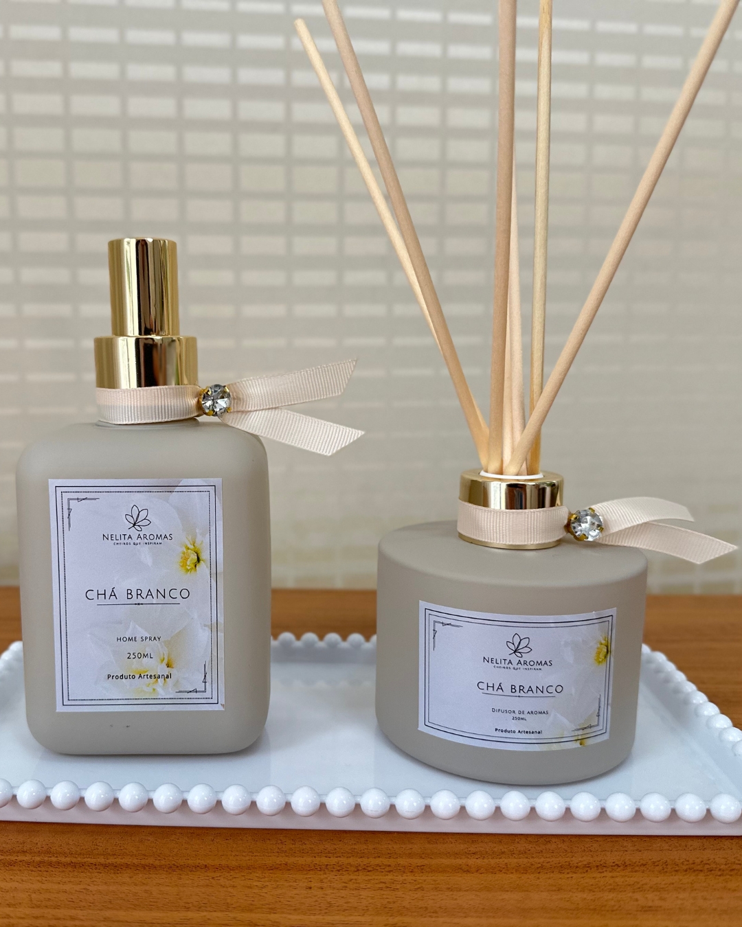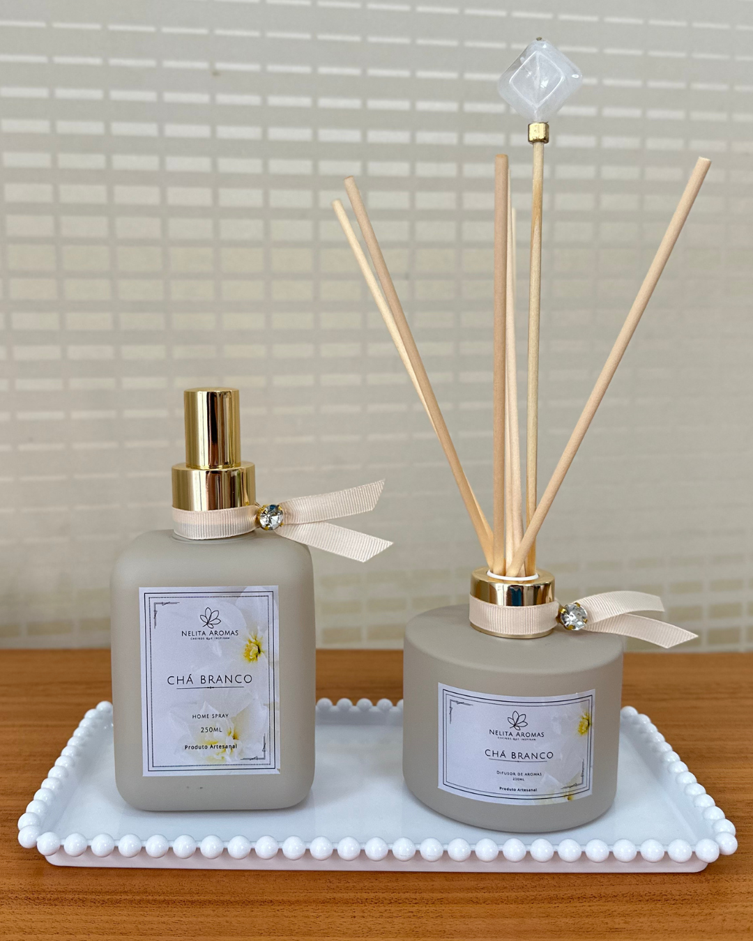 Produzido de forma artesanal, o Kit Chá Branco reflete o cuidado da Nelita Aromas em cada detalhe — da fragrância ao acabamento. Um kit pensado para quem valoriza ambientes leves, organizados e cheios de elegância.